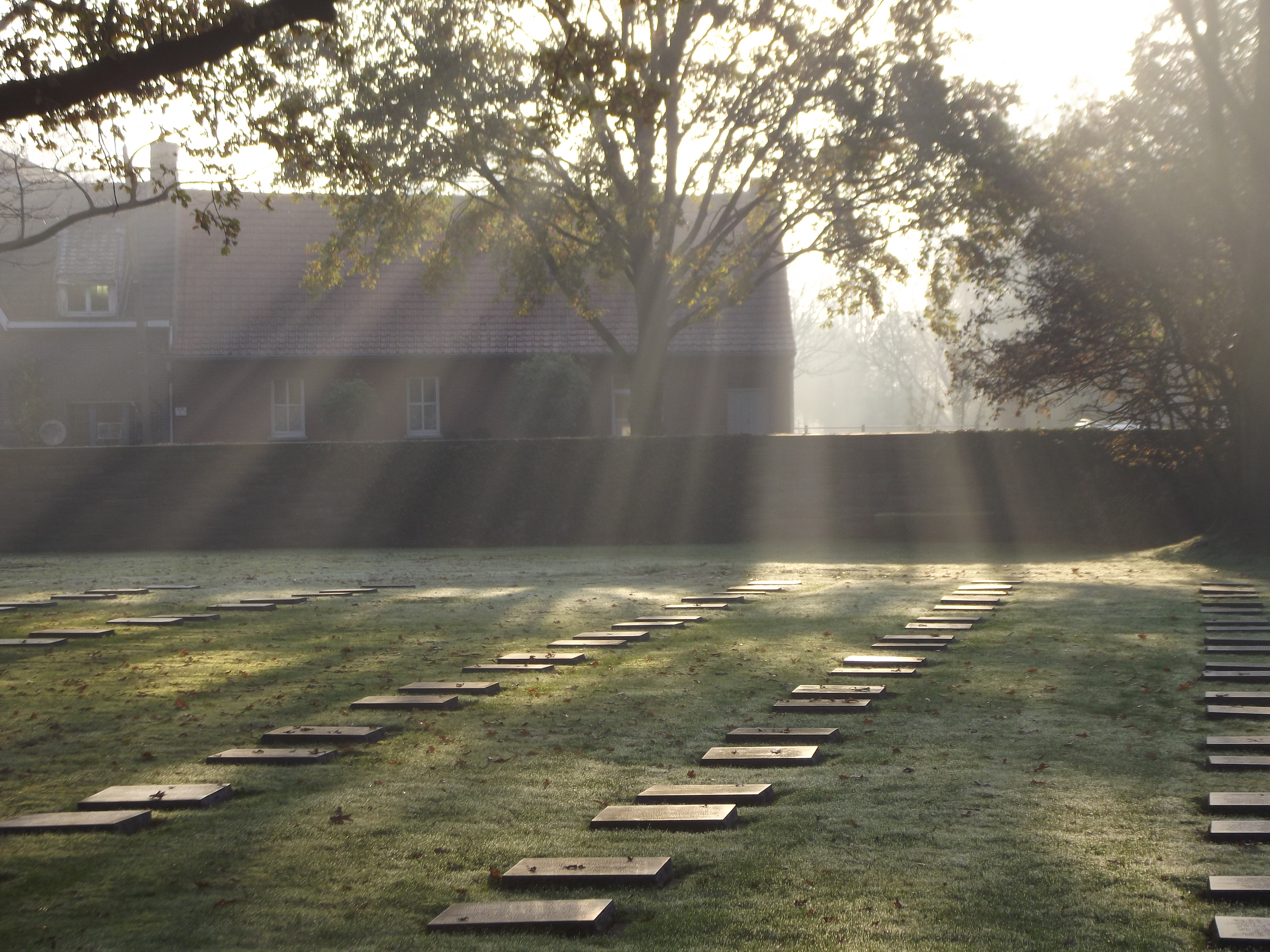 On the last day before the journey back we just had time to visit the German cemetery at Menin. With the early morning sun filtering through the trees the atmosphere was eerily quiet, and it was hard to envisage that the remains of 48,000 men are buried under the low grave markers, making this the largest military cemetery in Flanders.