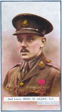 Geary lost the sight of one eye as a result of his wounds. He served with the Royal Flying Corps and later rejoined the 1st Battalion East Surrey Regiment on active service, and was wounded again. After the war he took Holy Orders and later emigrated to Canada. His Victoria Cross is held by the Canadian War Museum in Ottawa.