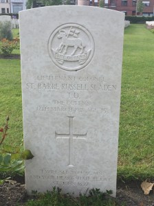 I also visited sites I’ve been to many times before; Ypres Reservoir Cemetery, where the battalion’s CO Lieutenant Colonel St Barbe Russell Sladen is buried, killed by a shell on 12 March 1918 whilst inspecting the battalion’s positions, and Tyne Cot, where Private Dilks lies directly behind the Cross of Sacrifice, one of the original burials in the cemetery.