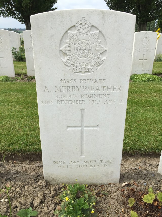 One of those who does has a known grave is Private Alfred Merryweather, buried at Tyne Cot, plot XXXIX.C.10.