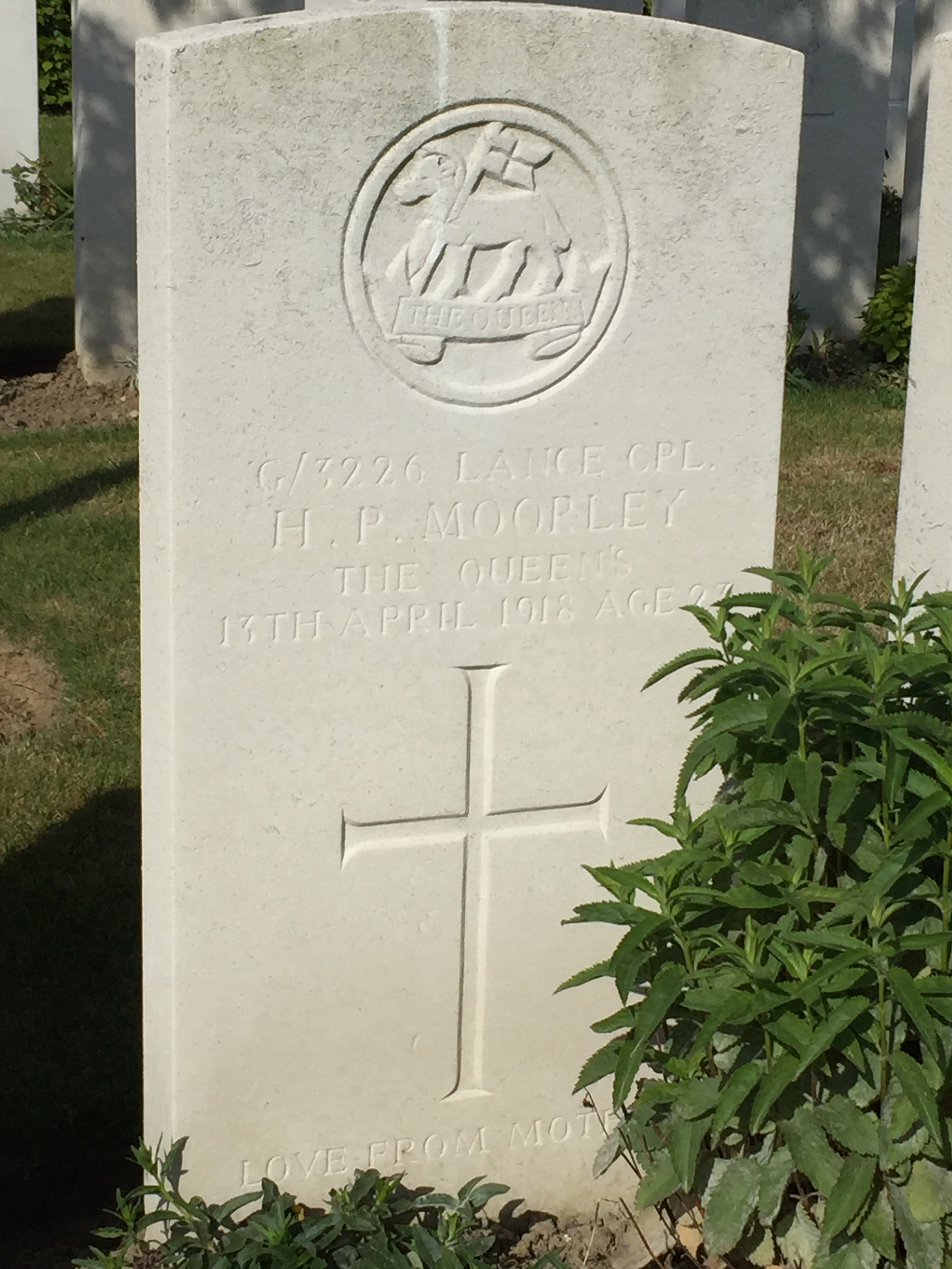 LOVE FROM MOTHER (Lance Corporal Henry Perkins Moorley, 13/04/1918, Outtersteene Commuanl Cemetery Extension)