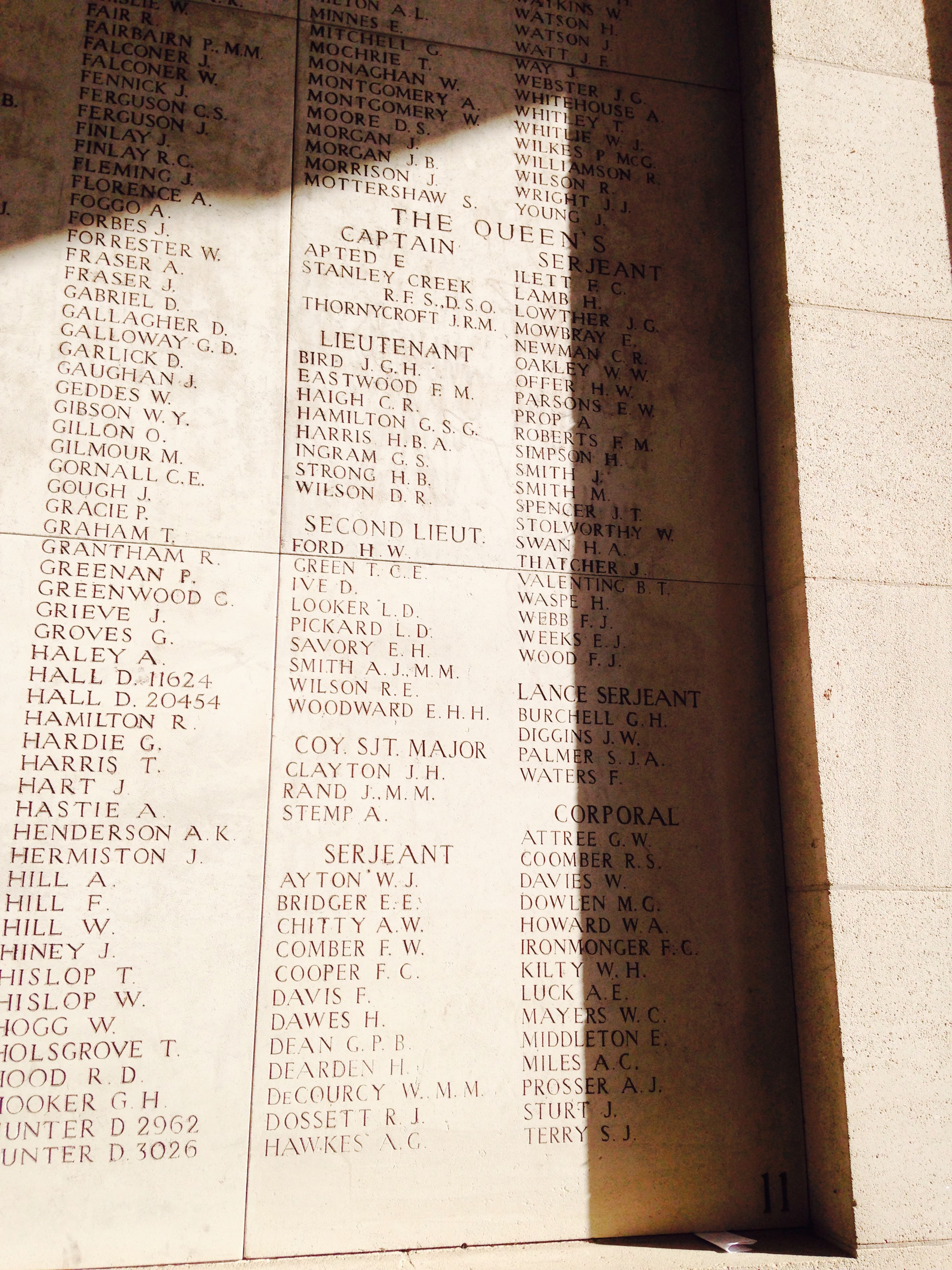 The battalion participated in the Retreat from Mons, the Aisne, First Ypres, Loos, the Somme, Arras, Passchendaele, the Battle of the Lys, and the final 100 days advance. Yet in terms of being in ‘action’ (for this purpose defined as active engagement with the enemy, i.e. conducting an attack or raid, or being subjected to the same), perhaps surprisingly this only accounts for 63 days of the war, or 4% of the battalion’s time overseas. However, that is not to say that casualties were not incurred even when the battalion was not in action, for example through shelling, illness, or accidents. The battalion suffered casualties (defined as killed, wounded, or missing) on 239 days of the war, which equates to 15%. Its longest spell without casualties (according to the war diary) was a period of 89 days, commencing in February 1915 and ending in May 1915 when it went back into the line near Bethune.