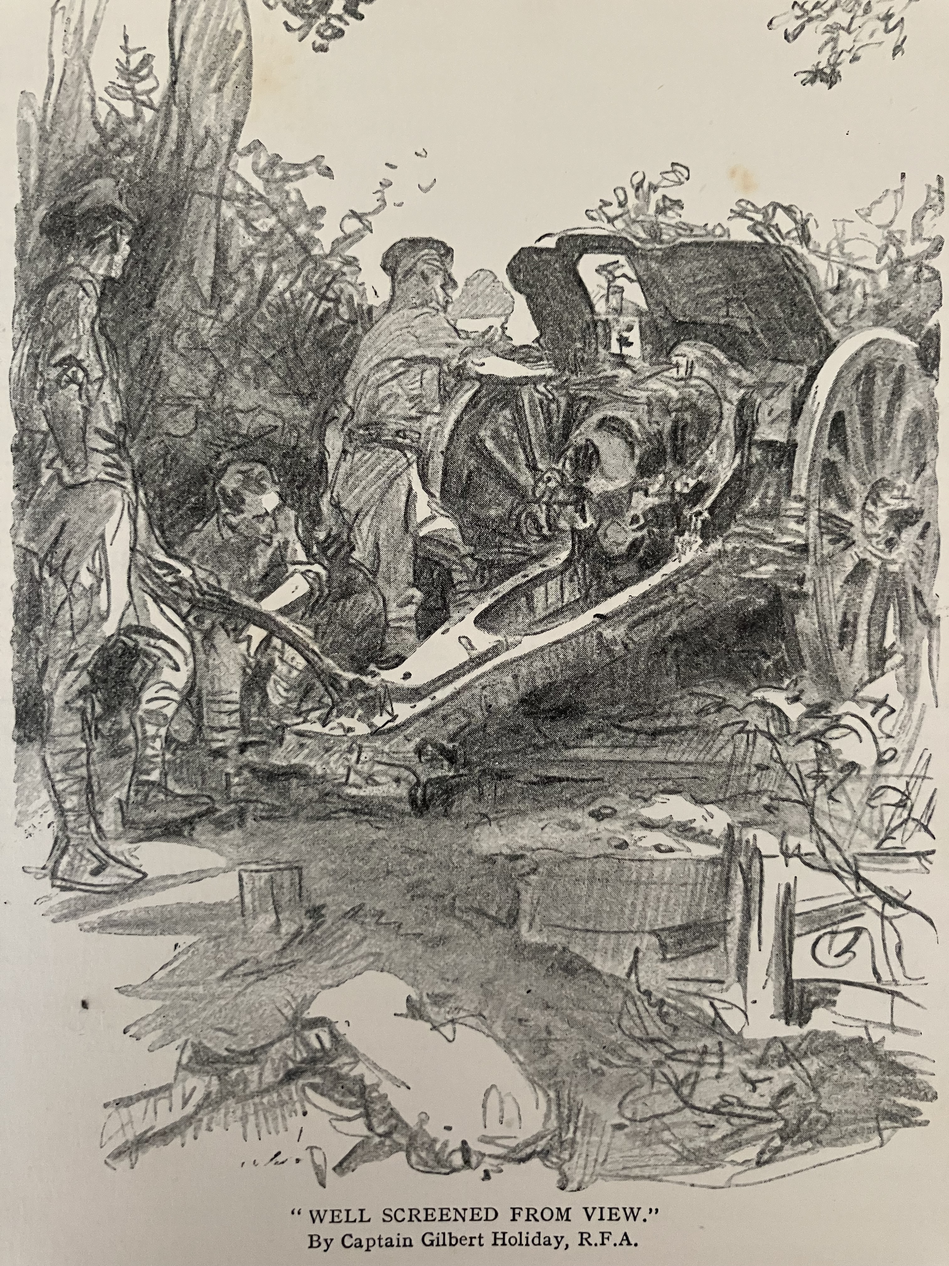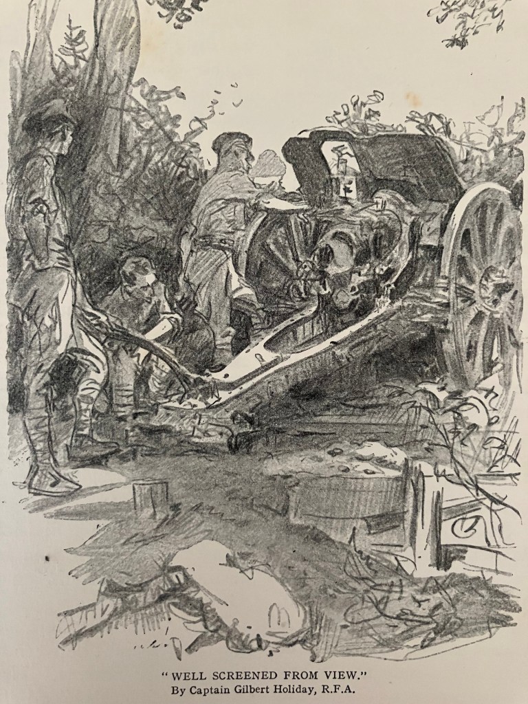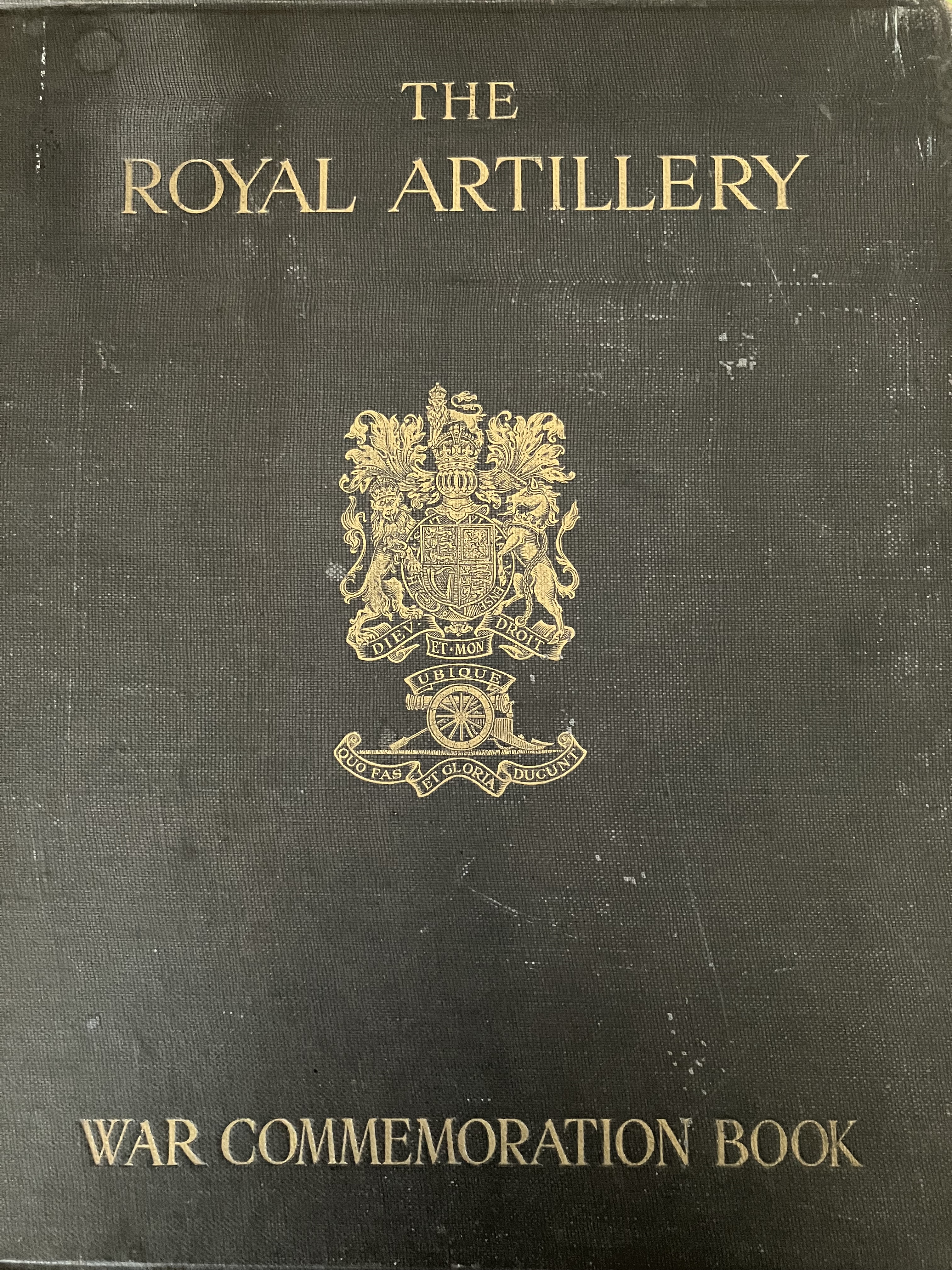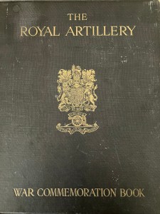 A while ago I picked up a copy of ‘The Royal Artillery War Commemoration Book’ from a charity shop. At over 400 pages and weighing in at nearly 3.5kg, this is an impressive work setting out the contribution of the Royal Artillery during the war, a not insignificant task given the scale of its involvement. The book is beautifully illustrated with many contemporary drawings and paintings, and includes a roll of honour of officers who died as well as examples of members of its ranks who received gallantry awards.