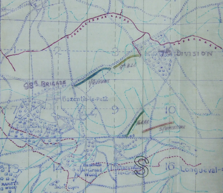 Like communities up and down the country, Sutton and the surrounding area were hugely impacted by the Battle of the Somme. Ten men from Sutton (representing 2% of the names on Sutton memorial) and 20 from Carshalton (8% of the names on Carshalton memorial) were killed on 1st July 1916 alone, or died of wounds received that day. Although there was not a local ‘pals’ battalion, the losses to individual units were still felt locally. For example, 12 of the 38 local men killed on 1st July were serving with the 7th Battalion of The Queen’s (Royal West Surrey Regiment). Why so many were serving in that battalion is unclear; it had been formed in Guildford in 1914 as one of Kitchener’s ‘new army’ service battalions. Twelve local men were also killed serving with the Territorial battalions of the London Regiment, in action at Gommecourt at the north of the battle.